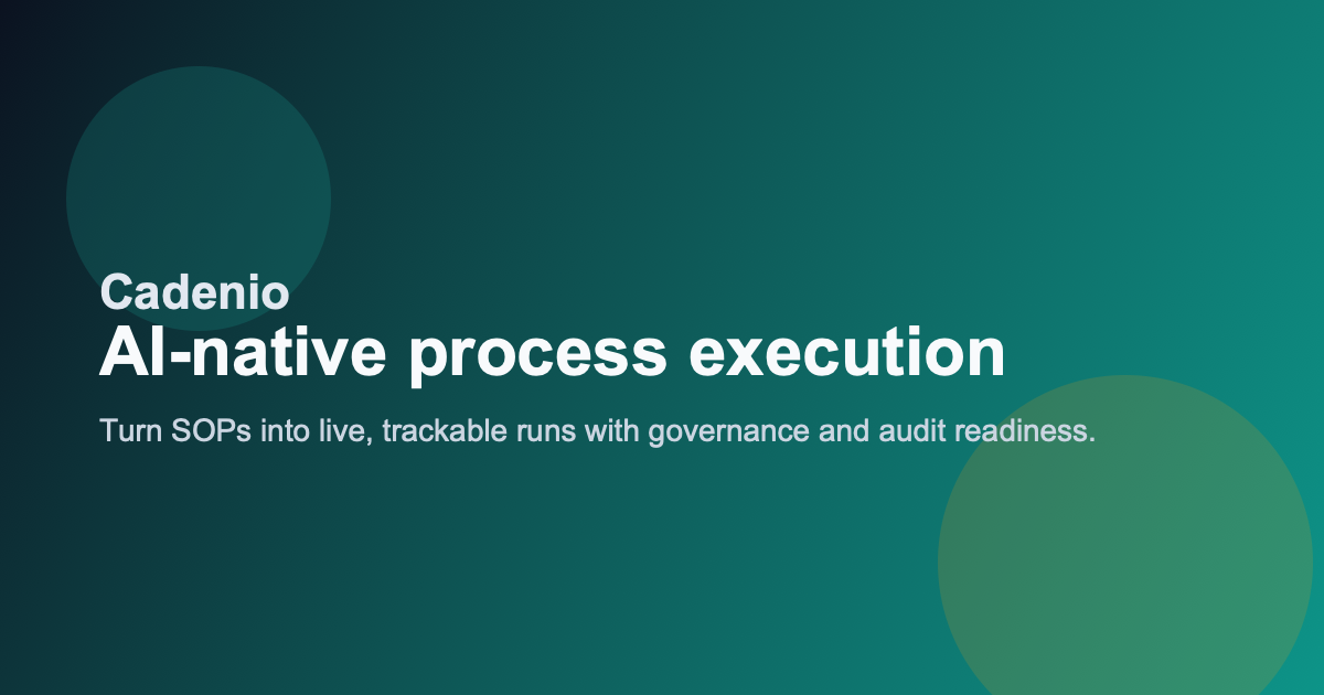 Cadenio is the process execution platform for operations and compliance teams. It makes critical processes actually run, with defined owners, escalating deadlines, and automatic audit trails.